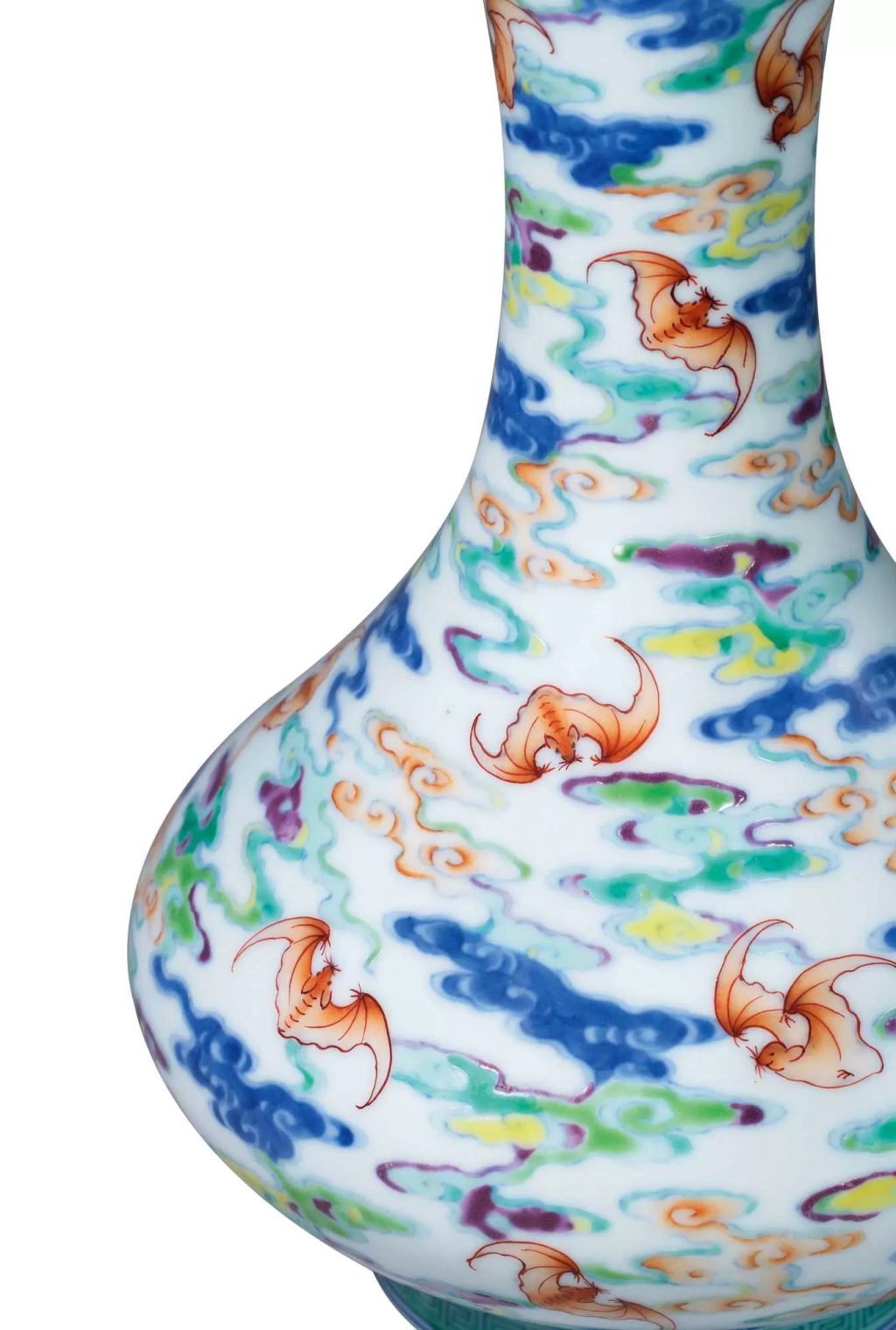 - 藝術風格:此瓶雲紋較雍正朝更為飄灑自然,徐徐而動,紋飾更為繁密,既有鬥彩的淡彩清麗又有粉彩的豐滿柔美,彰顯乾隆時期瓷器製作工藝精細、紋飾華麗繁縟的特點。