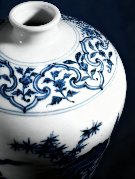 基本信息:2025 年 5 月 2 日,在佳士得香港「靛藍若化 —— 重要私人珍藏官窯青花器」拍賣專場中,此梅瓶估價為 5000 萬 – 8000 萬港元。該梅瓶高 35 厘米,曾為埃斯肯納齊(倫敦)、鴻禧藝術文教基金會收藏。