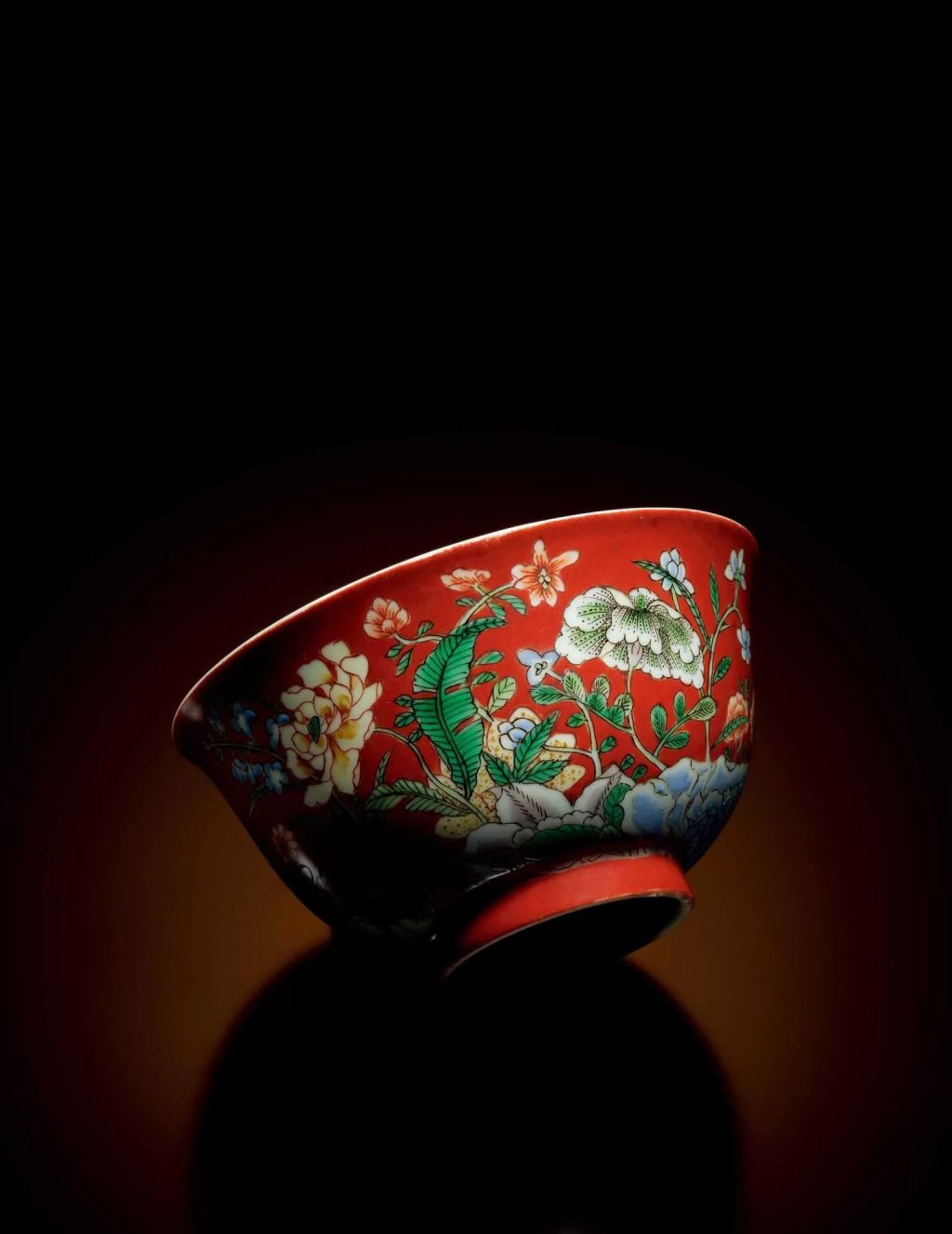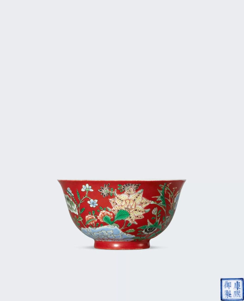 - 2023 年香港蘇富比:一件康熙珊瑚紅地五彩九秋同慶紋小碗落槌價為 320 萬元港幣。