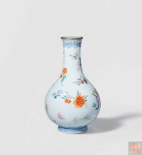 - 歷史背景:乾隆皇帝對藝術有極高追求,喜愛西方藝術表現形式,督陶官唐英承命竭力創製,「洋彩錦上花」之法即為唐英所創。據《清宮瓷器檔案》載,乾隆十六年(1751 年),管理九江關務惠色恭進「洋彩錦上花玉壺春瓶一對」,此瓶是目前所知唯一符合這一記載的作品,極有可能為文獻中所言乾隆十六年入藏清宮的洋彩錦上花玉壺春瓶一對之一。