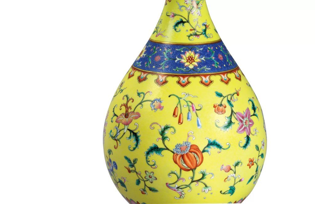 - 澳门多禄溙 2024 年秋拍:一只類似的清乾隆黃地洋彩軋道錦地折枝洋花玉壺春瓶以 765 萬港幣落槌。