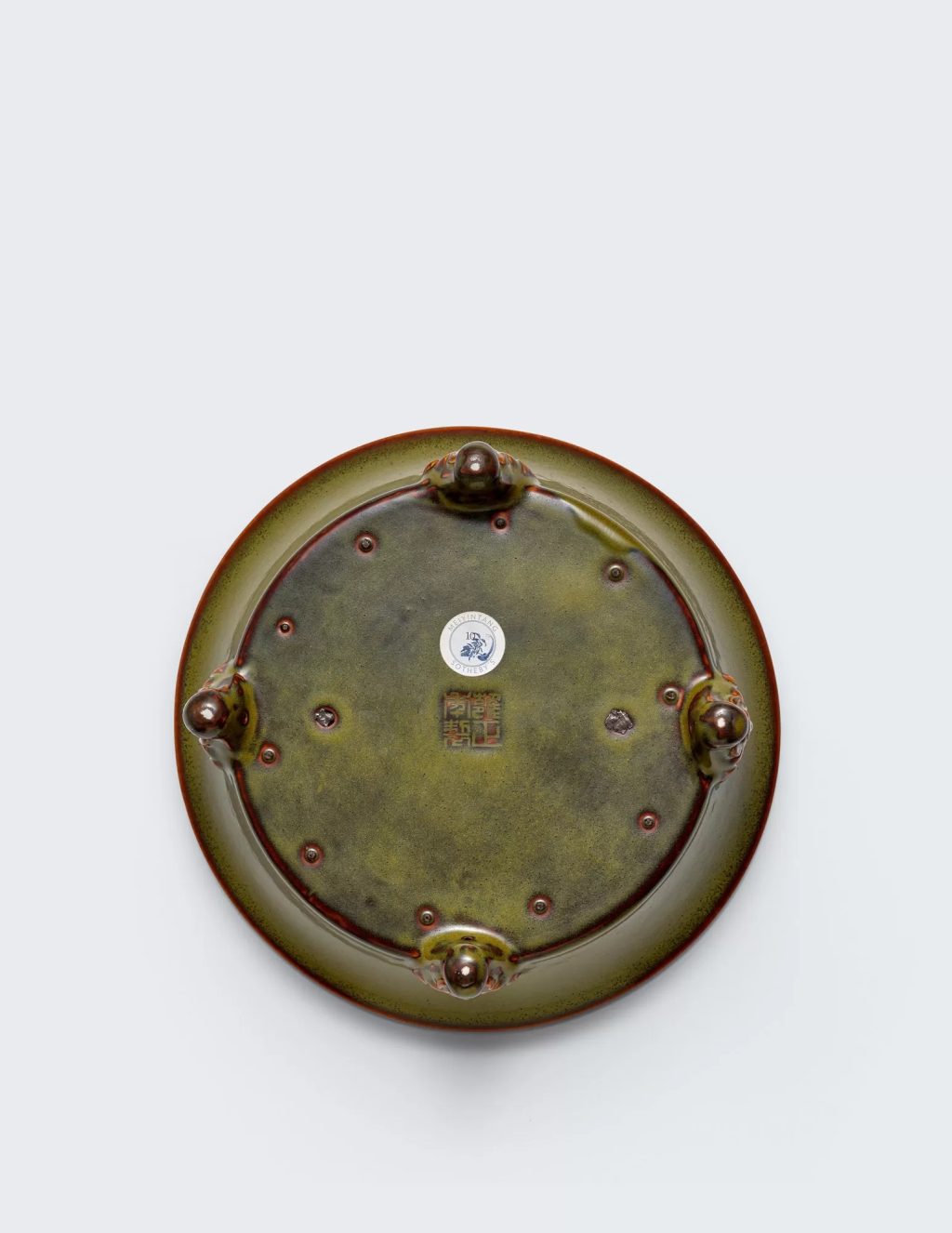 - 釉色:通體施以廠官釉,茶、黃二色交相呼應,口、底沿及獸足凸出处呈黃色,近足處流淌絲絲縷縷,仿若流螢,呈現出獨特的藝術效果。