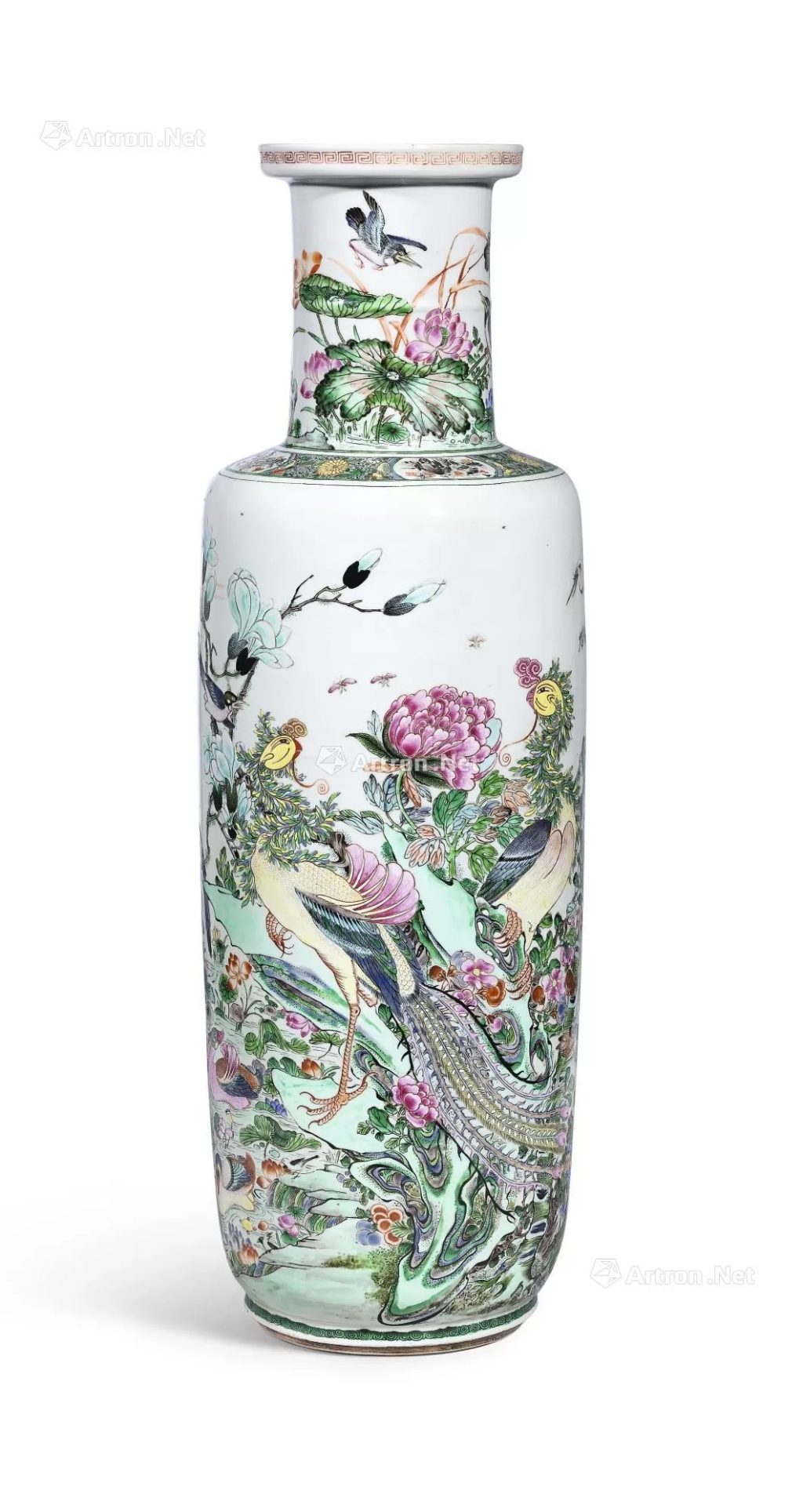 当澳门多禄溙拍卖厅的展灯映照在清康熙五彩加粉彩五伦图棒槌瓶上时,瓶身五彩绘就的仙鹤、鸳鸯、鹡鸰等禽鸟色彩浓艳,粉彩点缀的花木枝叶晕染柔和,“五伦图” 纹饰暗藏 “君臣、父子、夫妇、兄弟、朋友” 的伦理寓意,直颈、丰肩、直腹的棒槌瓶型挺拔端庄,既显 “彩料共生” 的工艺突破,又藏康熙朝 “以纹载道” 的文化追求。在这座见证清代彩瓷 “跨洋传艳” 的贸易枢纽,多禄溙以专业运作,让这件 “彩与德共生” 的瓷珍重焕光彩。