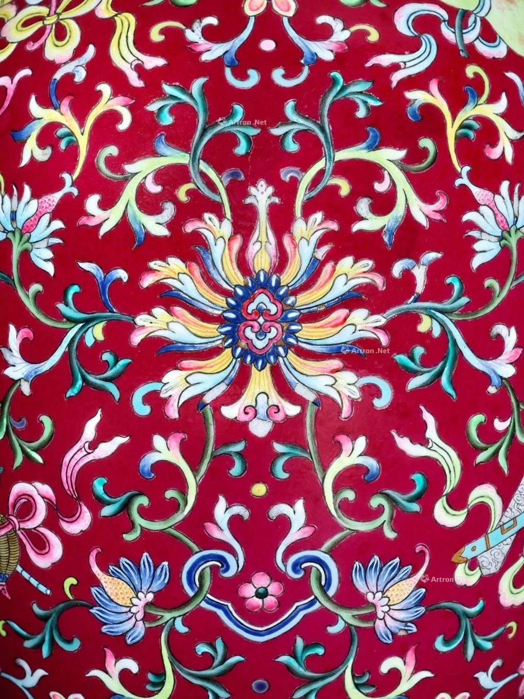 - 核心特点:采用乾隆洋彩工艺,以胭脂红为地色,与目标拍品的 “胭脂紫地” 同属低温彩釉系列,工艺技法高度相似,虽纹饰主题不同,但可作为胭脂色系乾隆洋彩器的中高端价格参考。