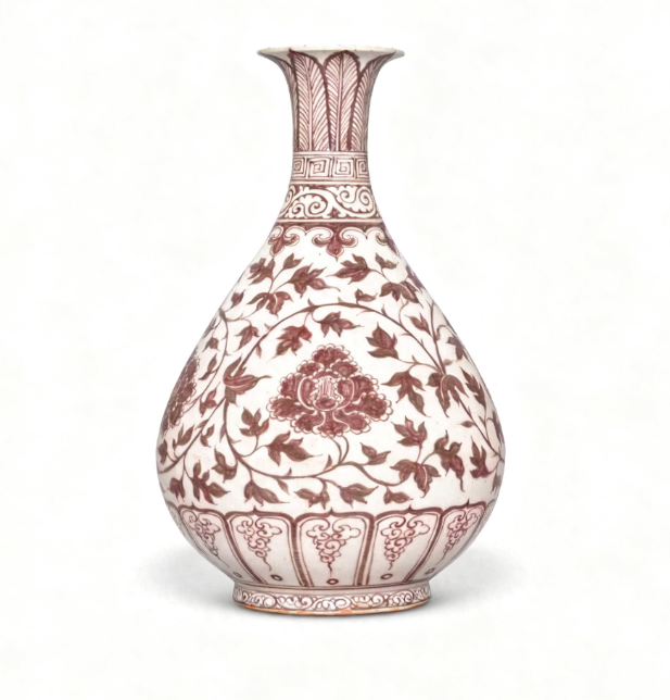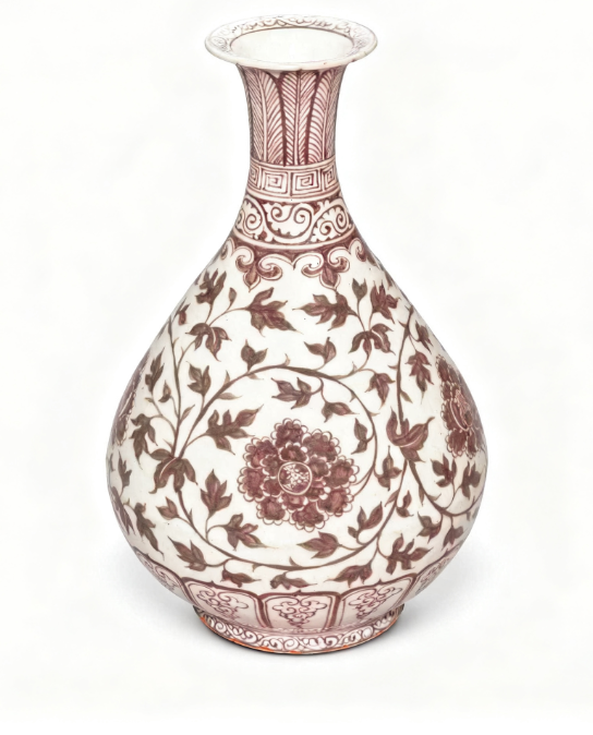 明洪武釉里紅纏枝牡丹紋玉壺春瓶是明代洪武年間的瓷器珍品