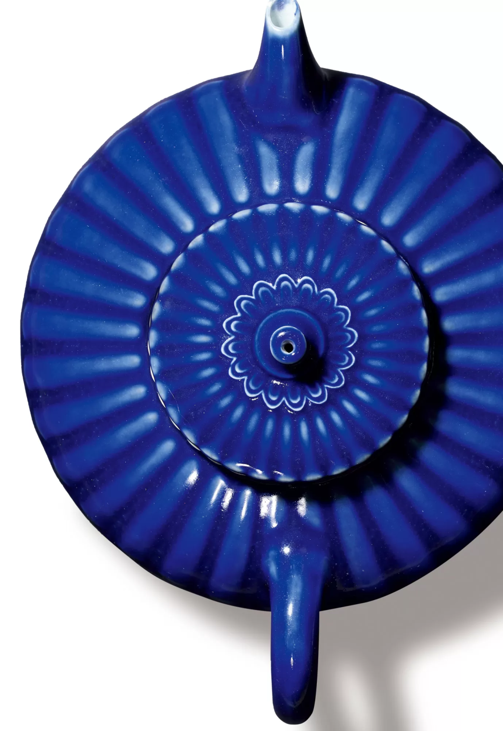 - 釉色特點:霽青釉,又稱「祭藍釉」,釉色深沉凝重,呈色穩定,如藍寶石般晶瑩剔透,給人一種古樸典雅的美感。此壺外壁、蓋面滿施霽青釉,釉色均潤光滑。