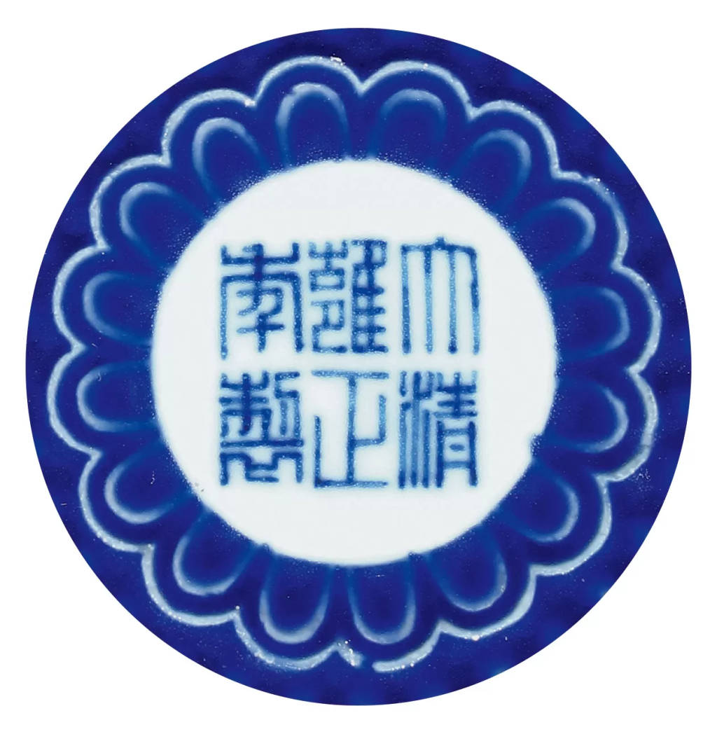 - 款識:外底陰刻「雍正年製」篆書款,外環飾花瓣紋,字體整齊規範,刀法細膩。