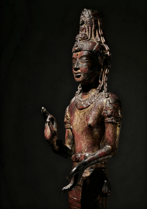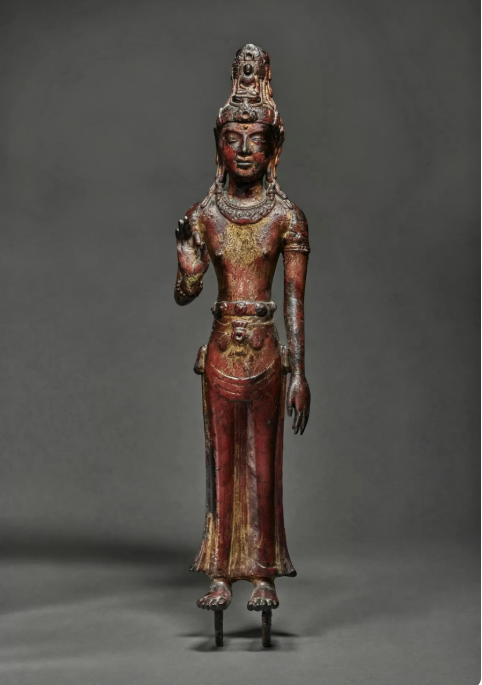 大理國十一至十二世紀銅漆金阿嵯耶觀世音菩薩立像是南詔、大理國時期極具特色和藝術價值的佛教造像