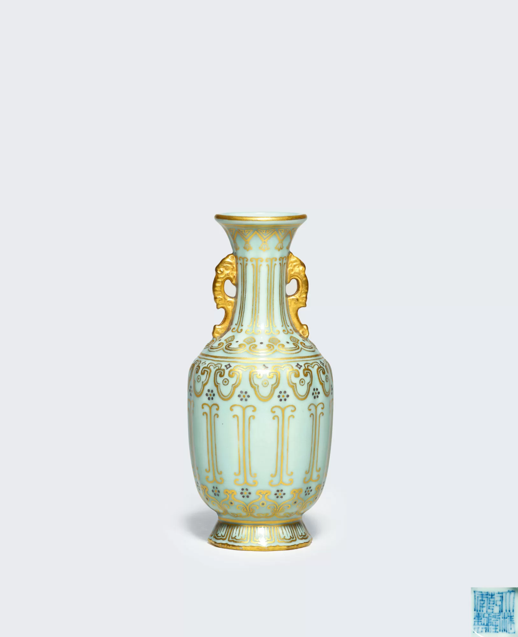 - 裝飾工藝:以青釉為地,周身描金點銀,仿東周錯金銀技藝,工藝精湛。青釉色澤悠暢渾厚,洋金炫彩使其錦繡斑斕,盡顯華麗富貴。