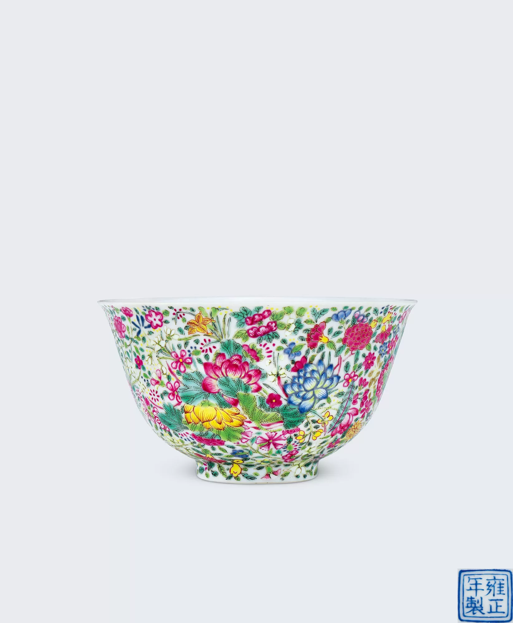 - 2017 年香港蘇富比:清雍正琺瑯彩萬花錦紋碗以 1870 萬港元成交。