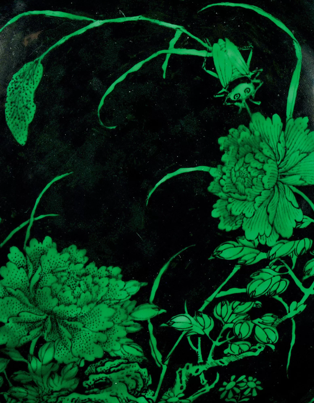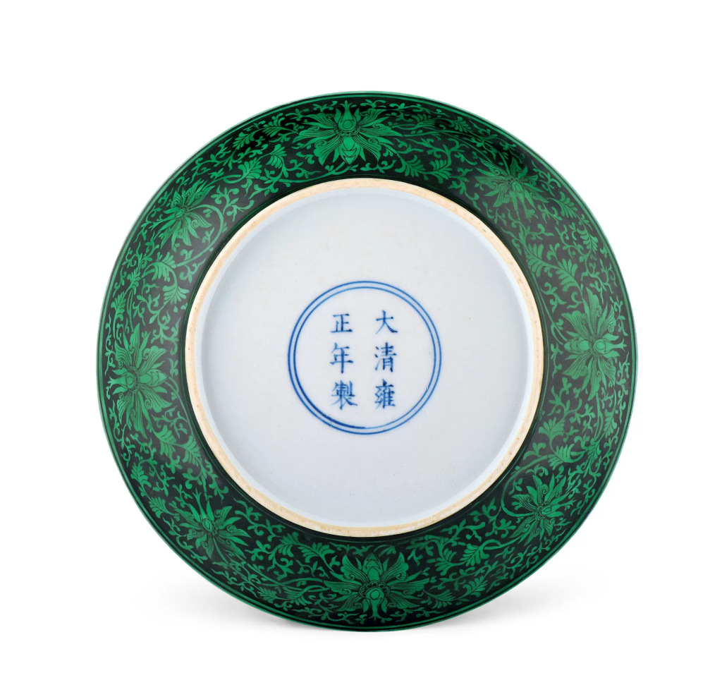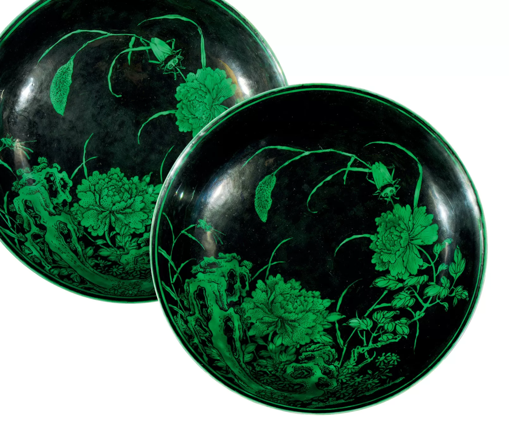在澳門多祿溙的策劃下,這對墨地綠彩花卉草蟲紋盤不僅是雍正官窯彩瓷的工藝典範,更成為連接澳門瓷貿史與清代宮廷審美的紐帶,引人探尋古瓷「以墨襯綠,以紋傳趣」的匠心。