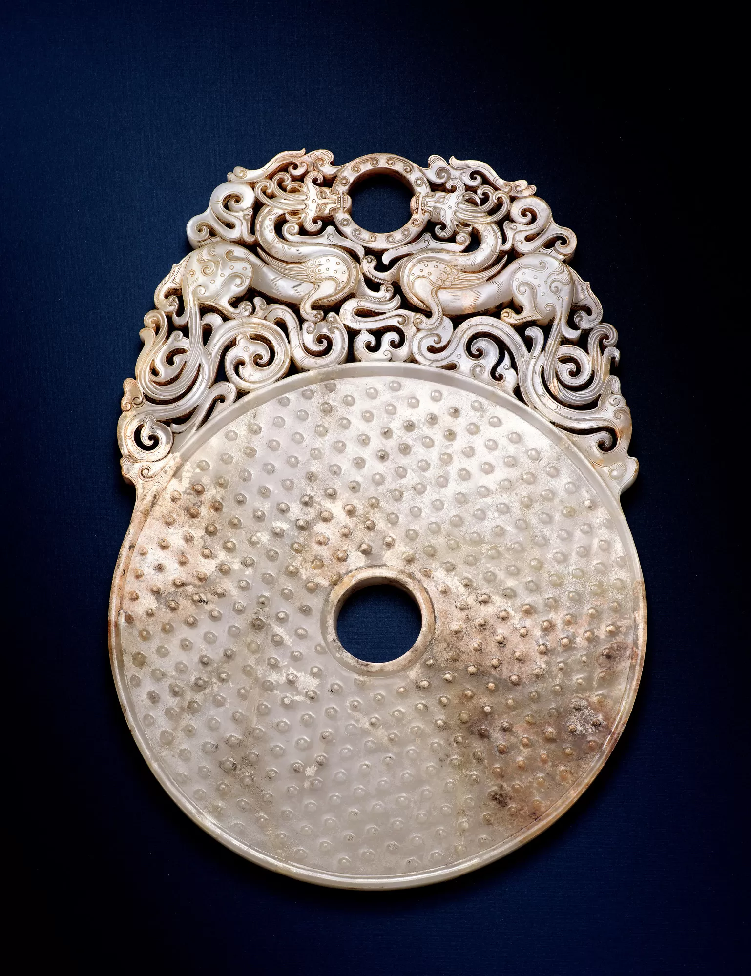 - 材質:選用整塊上乘和田青白玉料琢磨而成,玉質細膩潤澤,溫潤有加。