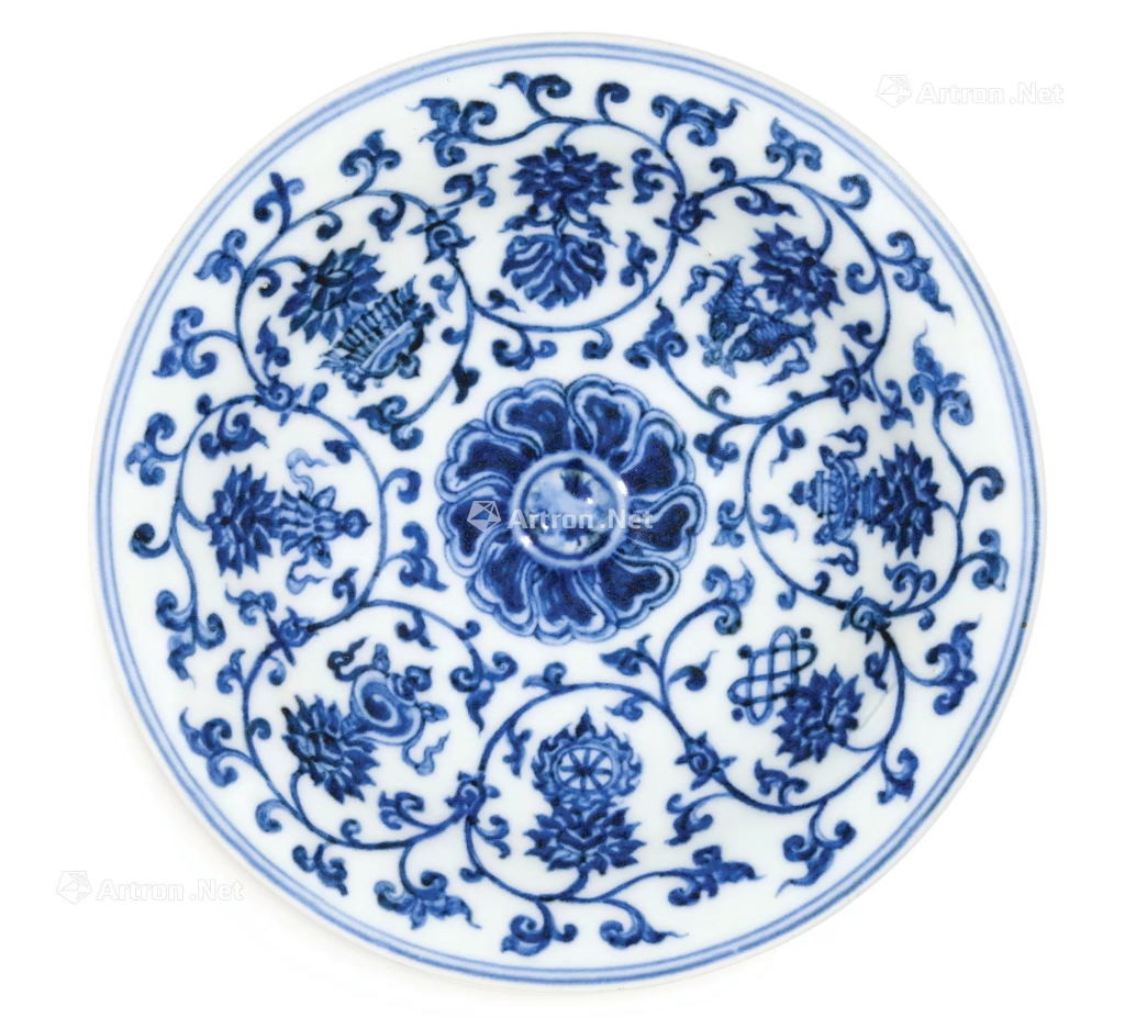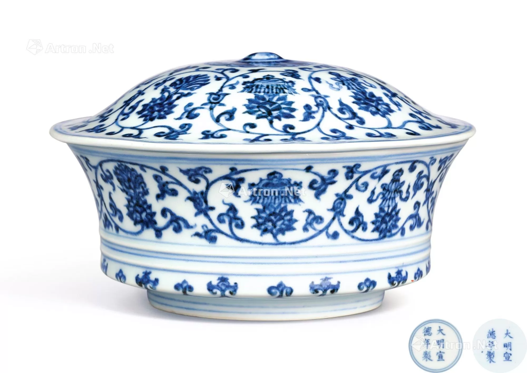 2020 年澳門多祿溙春季拍賣會中,明宣德青花缠枝莲托八吉祥纹大碗以 43,850,000 元港元成交。