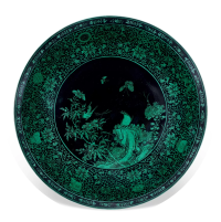 - 器型來源:寶月瓶這種器型最早是遼京西夏時期的酒器,明清時期主要用於宮廷陳設。此式扁瓶屬於唐英榷陶期間的創新器型,源於清宮在摹仿永宣青花扁壺的基礎上加以化裁而成,是十八世紀宮廷最尊貴的御瓷造型之一。