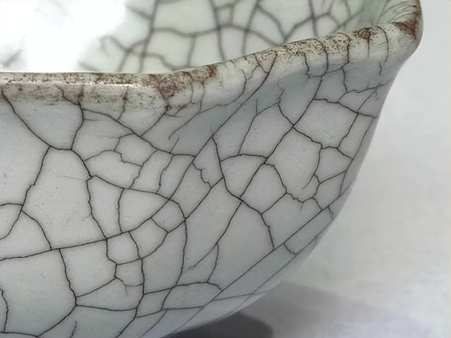 開片:杯壁遍布金絲鐵線,這是哥窯瓷器的典型特徵。大紋片呈深褐色,小紋片為黃褐色,是匠人精心控制窯燒溫度、氧化過程及環境所成。