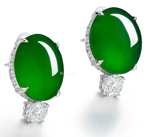- 設計精美:款式多樣,有的設計簡潔大方,以突出翡翠和鑽石的天然之美;有的則採用複雜的造型,如耳飾周圍鑲嵌鑽石形成花邊或圖案,襯托翡翠的主體地位,整體設計既奢華又不失優雅,能很好地襯托出佩戴者的高貴身份。