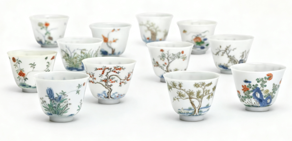當澳門多祿溙拍賣廳的展櫃緩緩拉開,一套鬥彩十二花神杯靜靜陳列,杯身月季、荷花、寒梅等花卉依月令綻放,釉色濃淡相宜,瞬間將人帶入清代康熙年間的雅致瓷韻中。在澳門這座兼具東方美學與西式風情的城市裡,多祿溙拍賣以專業運作,讓這套傳世珍品煥發新生。