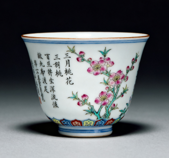 - 11 年香港蘇富比拍賣的三月桃花杯,成交價為 122.6 萬港元。