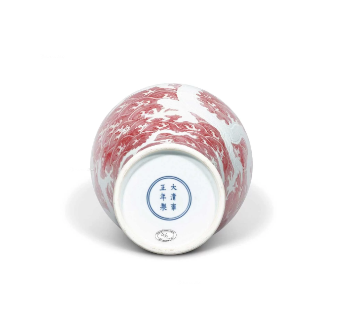 - 在保利香港十週年拍賣中,Lot 3312 清雍正釉裡紅剔刻海水龍紋梅瓶,估價為 HKD 26,000,000 – 35,000,000,最終以 HKD 30,000,000 成交,成為該拍賣的成交桂冠。
