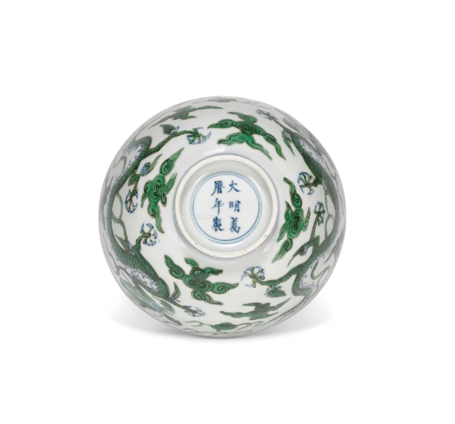 - 香港佳士得 2024 秋拍:一件明萬曆青花綠彩雲龍紋盌,帶有雙圈六字楷書款,最終以 1764000 港元成交。