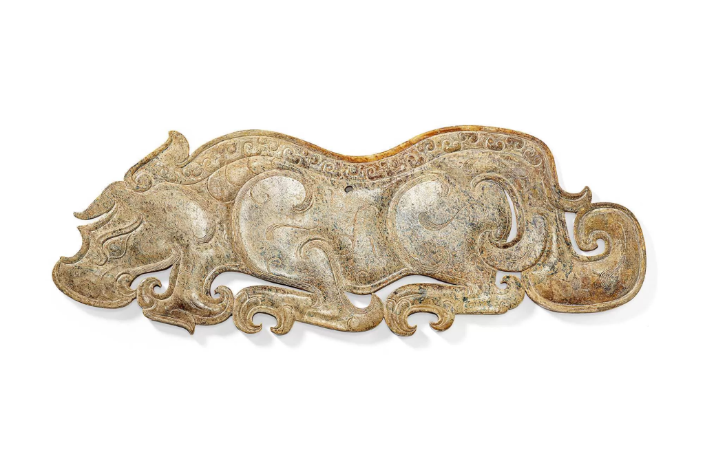 - 工藝特點:整件造型凶猛威嚴,結構準確,線條繁複流暢,尤其是曲線的運用,充分顯示了戰國玉雕的審美傾向。
